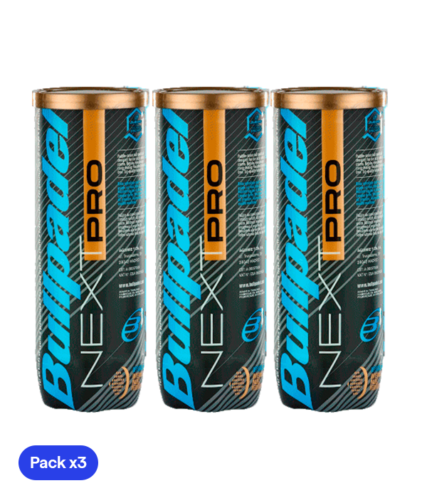 Pelotas Bullpadel Next Pro (Pack x·3) de gran velocidad y durabilidad. La bola Next, es una pelota de máxima velocidad , que permite agilizar los partidos. Posee una gran durabilidad gracias a su fabricación en fieltro sintético de máxima calidad, y aumenta y garantiza una mejor sensación de golpeo. Además, cuenta con un núcleo de caucho de alta densidad que evita la pérdida de la presión aumentando la durabilidad de la bola. Se define como un modelo premium de gran control que hará las delicias del jugador de alto nivel permitiéndole hacer todo tipo de jugadas.