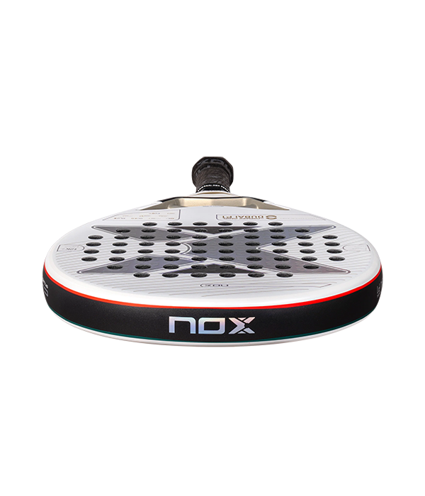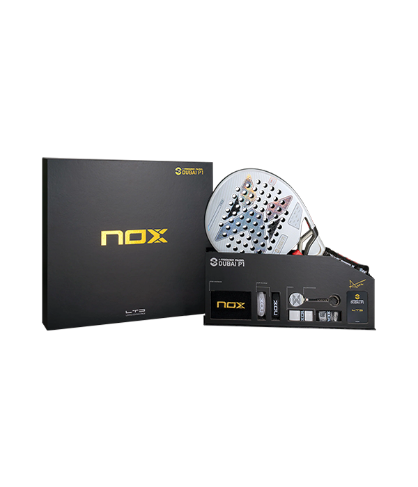 La Nox AT10 Genius 12K LTD 2025 Edición Dubai presenta una estructura revolucionaria que combina marco de fibra de carbono con núcleo de goma Multicapa MLD Black Eva. Su distribución de peso optimizada facilita un manejo superior en pista, ofreciendo el equilibrio perfecto entre potencia y precisión para satisfacer las exigencias de jugadores profesionales. La edición exclusiva del P1 de Dubai, incluye también una muñequera negra y detalles dorados, un llavero réplica de la AT10 Genius 12K, dos correas intercambiables y dos overgrips Nox.