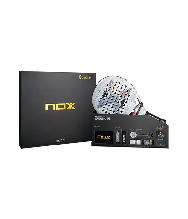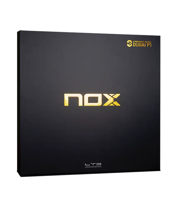 La Nox AT10 Genius 12K LTD 2025 Edición Dubai presenta una estructura revolucionaria que combina marco de fibra de carbono con núcleo de goma Multicapa MLD Black Eva. Su distribución de peso optimizada facilita un manejo superior en pista, ofreciendo el equilibrio perfecto entre potencia y precisión para satisfacer las exigencias de jugadores profesionales. La edición exclusiva del P1 de Dubai, incluye también una muñequera negra y detalles dorados, un llavero réplica de la AT10 Genius 12K, dos correas intercambiables y dos overgrips Nox.