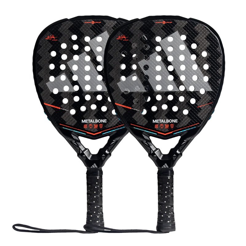 Pack de dos palas Adidas Metalbone 3.5. La pala Adidas Metalbone 3.5 2026, con su construcción en Carbono Aluminizado 16K fusiona rigidez extrema con durabilidad incomparable. Incluye su revolucionario sistema de peso removible METALBONE permite personalizar el balance hasta 11,2 g mediante pesos laterales y superiores, adaptándose a tu estilo de juego. El grip extendido Extra Power GRIP amplifica la inercia en cada golpe, mientras que la estructura Low Poly poliédrica garantiza rigidez superior. El Power Groove integrado refuerza la estabilidad estructural, y la goma EVA de baja densidad SOFT PERFORMANCE ofrece una salida de bola excepcional con máxima comodidad.