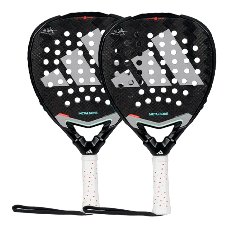 Pack de dos palas Adidas Metalbone 3.4, la pala del jugador profesional Ale Galán con tres tecnologías revolucionarias para un juego de ataque inigualable: el mango alargado Power Extra Grip, que mejora la inercia en cada golpe; el diseño poliédrico Low Poly en el marco y el corazón, que maximiza la potencia; y el raíl Power Groove en el marco, que incrementa la rigidez estructural.