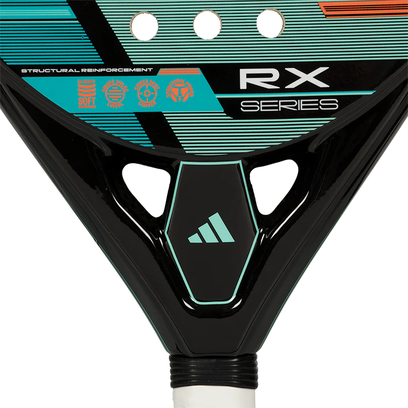Pala Adidas RX Series 2026, diseñada para jugadores que exigen máximo rendimiento. Sus Smart Holes Lineal refuerzan la superficie de impacto en grupos equidistantes, garantizando durabilidad excepcional. Los refuerzos perimetrales estructurales generan resistencia superior ante las torsiones más exigentes del juego. La goma EVA de baja densidad proporciona salida de bola excepcional y comodidad sin compromisos, identificable por su tapón negro distintivo. Construida en fibra de vidrio para un toque refinado y control preciso en cada golpe. Su formato redondo concentra el peso hacia el grip, ofreciendo el control defensivo que demandan los movimientos más ágiles.