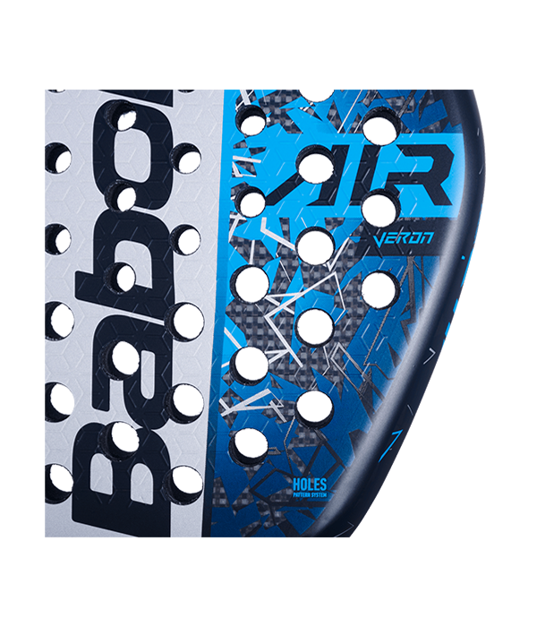 La pala Babolat Air Veron 2025 ofrece manejabilidad y jugabilidad para perfecta para los jugadores de nivel intermedio. Sus caras integran Carbon Flex, una combinación de fibra de vidrio y fibra de carbono, una mezcla más flexible que ofrece una potencia dinámica. Además, la superficie cuenta con la tecnología 3D SPIN. Relives en la superficie que permiten mayor efecto y control sobre la bola. El sistema Holes Pattern System optimiza la distribución y tamaño de los agujeros para para aumentar la transmisión de potencia y la precisión al devolver los golpes.
