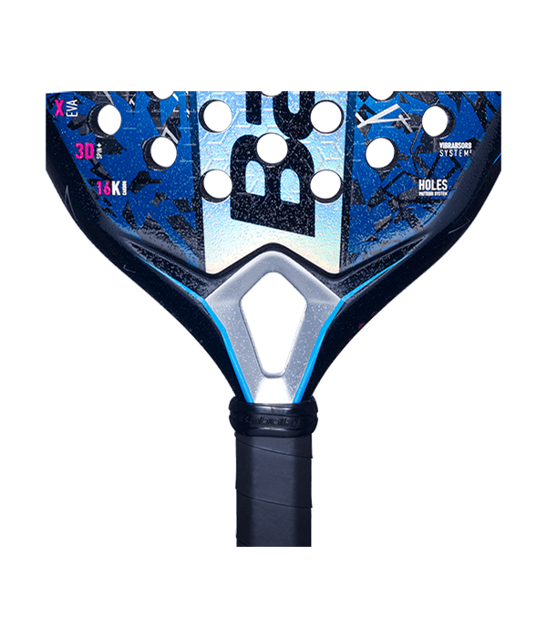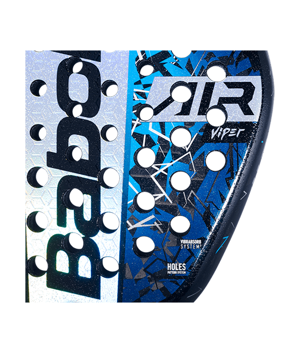 Pala Babolat Air Viper 2025, una pala de manejabilidad extrema y una gran reactividad. Las caras de esta Air Viper 2025 integran Carbono 16K, un tejido entrelzado de tacto duro que favorece los golpes de ataque. Su núcleo X EVA consta de tres capas de diferente densidad, las dos capas exteriores más rígidas y la capa interior más blanda, que proporciona más tolerancia y confort en golpes más lentos. Los acabados rugosos permiten golpes con efecto con mayor facilidad. El sistema de distribución de agujeros, Holes Pattern System, aumenta la transmisión de potencia y la precisión.