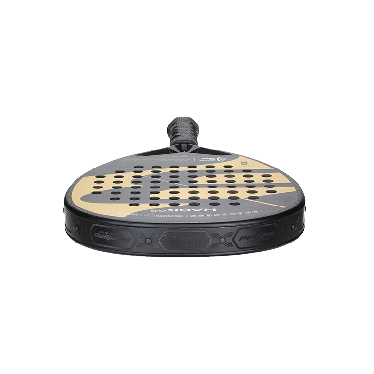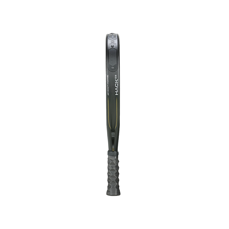 Como es común en la pala de Paquito Navarro, la HACK 03 incorpora el sistema Air React Channel, un marco aerodinámico que refuerza y aligera la pala. Su núcleo externo integra un nuevo carbono combinado con Tricarbon. EL interior se ha reforzado con goma MultiEva y el marco CarbonTube con fibra de carbono 100%.