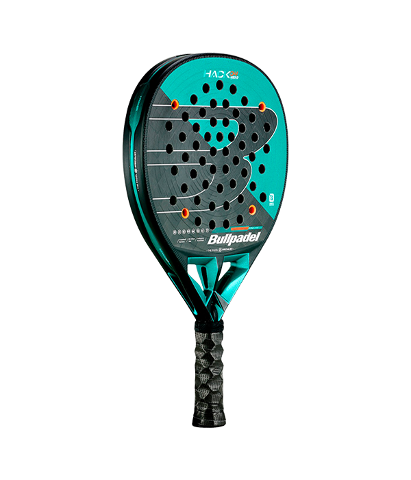 Pala Bullpadel HACK 04 Hybrid 2025, una pala de formato híbrido de potencia dinámica. Su nuevo corazón TRICORE aumenta el grosor de sus vectores para reducir vibraciones y mejorar la estabilidad y potencia. También el AIR REACT CHANNEL incorpora una novedad. ahora atraviesa por completo el corazón, traduciéndose en una mejora de la manejabilidad y de la aceleración.
