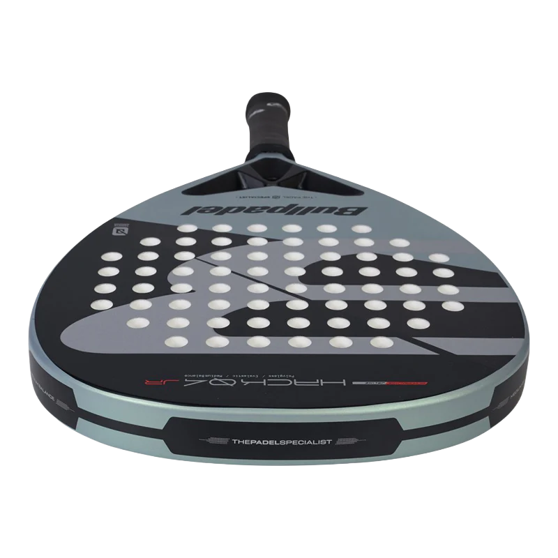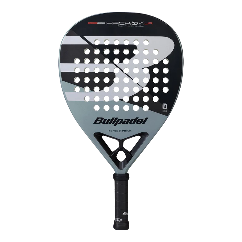 La Pala Bullpadel Hack 04 JR, pala oficial de Paquito Navarro adaptada a las necesidades de los jugadores junior más exigentes. Este modelo de forma de diamante ofrece una combinación de potencia, rigidez y control para jóvenes con un alto nivel de juego.