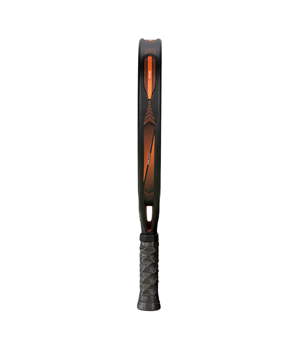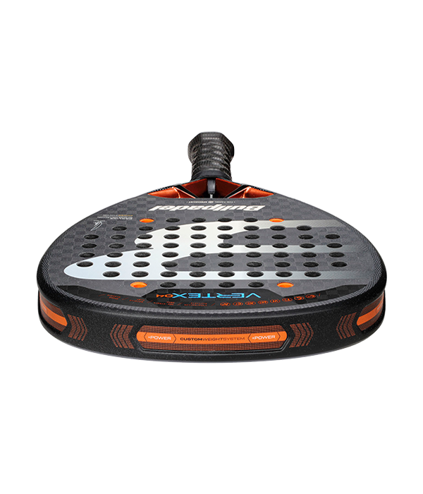 Pala Bullpadel VERTEX 04 2025, la pala de Juan Tello, una arma de potencia, aerodinámica y manejable. La Vertex 04 destaca por su construcción con X-Tend Carbon, un material avanzado de 12K filamentos de carbono entrelazados que aportan maniobrabilidad. El núcleo ha sido diseñado con una estructura tipo "sándwich", compuesta por tres capas de EVA (Etileno-Vinil-Acetato) de distintas densidades, dos exteriores de mayor densidad y una interior más blanda.
