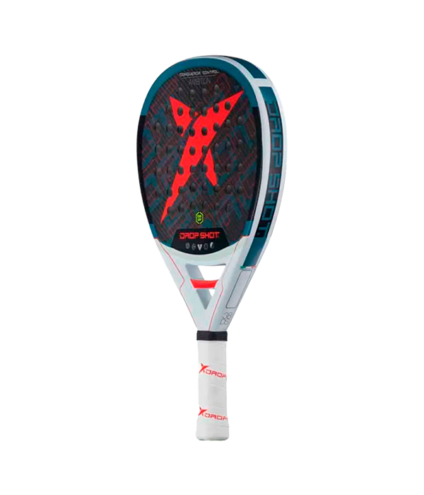 La Drop Shot Conqueror Control es una pala ideal para jugadores intermedios y avanzados que buscan control y comodidad. Pertenece a la línea Conqueror y ofrece un equilibrio entre potencia, precisión y durabilidad. Su forma de lágrima sitúa el punto dulce ligeramente alto, facilitando golpes precisos. Cuenta con un núcleo Eva Soft para mayor elasticidad y ligereza, y un balance medio que aporta manejabilidad y firmeza. Incorpora tecnologías como carbono 3K, sistema de agujeros progresivo (Smart Holes), acabado con efecto (Spin Coating) y refuerzo central (Power Beam Heart) para mejorar el rendimiento y la resistencia. Peso: 360-370g.