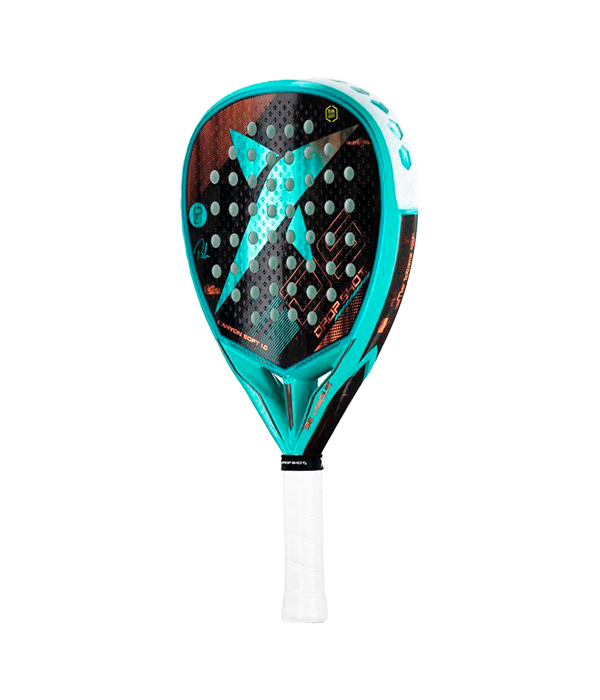La Drop Shot Canyon Soft 1.0 cuenta con los materiales más vanguardistas y apuesta por un marco con Twin Tubular System, un doble tubular de carbono, caras conformadas por TeXtreme 24K, de 24.000 monofilamentos por hilo de carbono, y tecnología Curv 360 y un núcleo interior de Eva Soft, una goma de densidad baja, alta recuperación y enérgica salida.