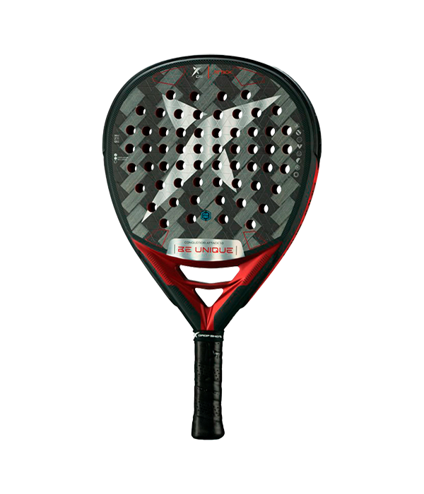 La pala Drop Shot Conqueror Attack 1.0 con forma de lágrima y goma EVA Pro interna ofrece un balance medio-alto, centrado hacia la cabeza de la pala. Sus caras están fabricadas con Carbono 24K Twill, un material avanzado con 24.000 filamentos por hilo que combina flexibilidad, resistencia y ligereza, brindando mayor control y rápida respuesta al golpear la pelota.