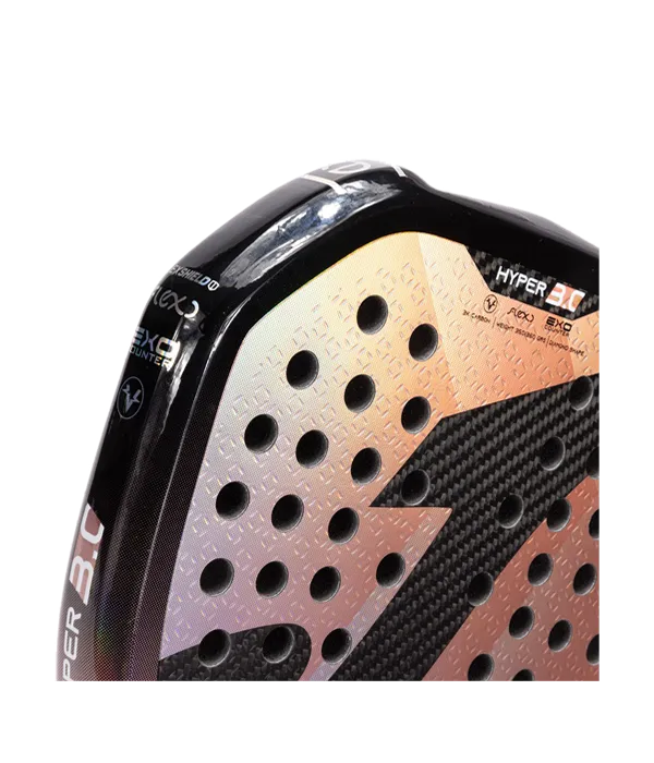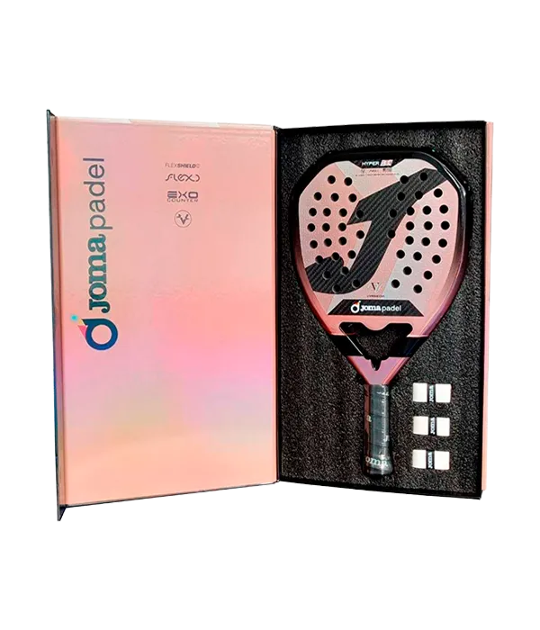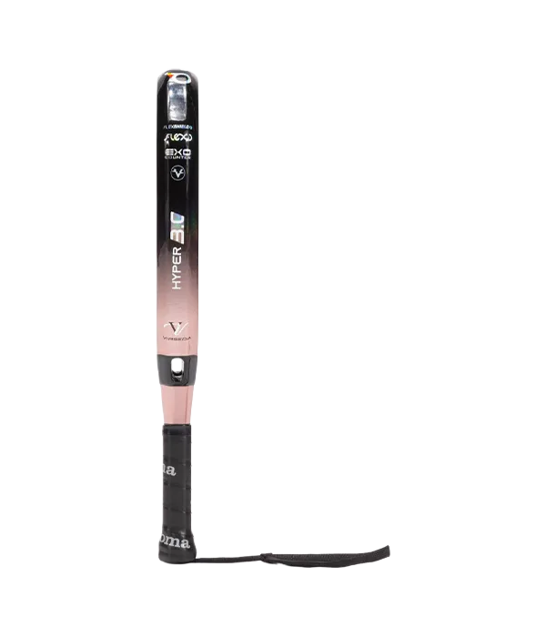 La Pala Joma Hyper 3.0 de Vero Virseda Rosa ofrece un equilibrio óptimo entre precisión y potencia, diseñada específicamente para competidores de nivel avanzado o profesional. Su configuración híbrida con balance medio-alto maximiza la exactitud sin sacrificar la velocidad de salida. Incorpora núcleo FLEXO Black EVA de alta densidad que potencia la respuesta, mientras sus caras de fibra de carbono FLEXSHIELD 3K aportan rigidez y rendimiento superior. El marco EXO COUNTER 100% carbono garantiza longevidad y solidez estructural. Su tecnología VIBRA-OUT disminuye un 40% las vibraciones, previniendo lesiones, complementado por un mango octogonal ergonómico. Con un peso ultraligero de 350-360 gramos.