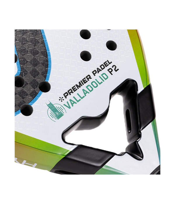 Pala oficial Premier Padel Valladolid P2 2025, creada para jugadoras que buscan control, potencia y rendimiento profesional. Su diseño multicolor exclusivo, inspirado en el torneo, destaca por su sublimado único. Con peso ligero (350-360 g) y balance de 25,5 cm, ofrece estabilidad y manejo ágil. Su longitud facilita el alcance y aporta seguridad en ataque y defensa. Versátil y precisa, ideal para el pádel de alto nivel.