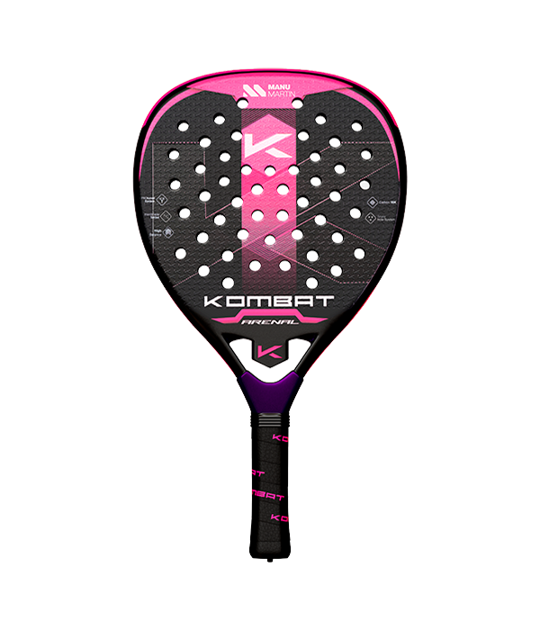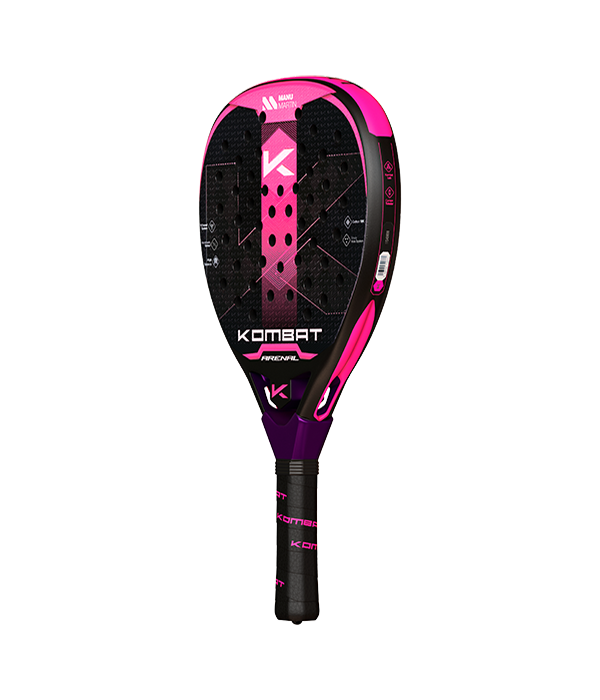 Pala Kombat Arenal 2025, una pala para jugadores agresivos de potencia. Formato diamante y balance alto, con núcleo de Black EVA de dureza que ofrece un tacto equilibrado, ideal para jugadoras que buscan una sensación sólida en cada golpe. El tubular de 100% fibra de carbono garantiza una estructura resistente y ligera, mientras que