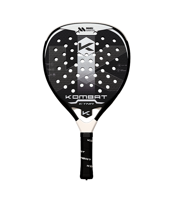 Pala Kombat Etna 2025, la pala de Manu Martín con un molde en forma diamante y balance alto. Su núcleo está fabricado en Black EVA de alta densidad, lo que proporciona una dureza extra para jugadores que prefieren un tacto firme y una mayor transferencia de energía en sus remates.