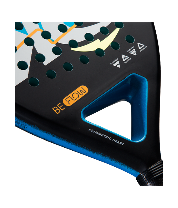 La pala BE Flow es una pala ideal para jugadores en evolución, diseñada para ofrecer manejo sencillo y facilitar la mejora en el juego, especialmente en golpes de control. Su forma circular optimiza la precisión en voleas y golpes desde el fondo de la pista, asegurando mayor consistencia y efectividad. El corazón asimétrico equilibra la distribución del peso, mejorando la maniobrabilidad y estabilidad en cada golpe.