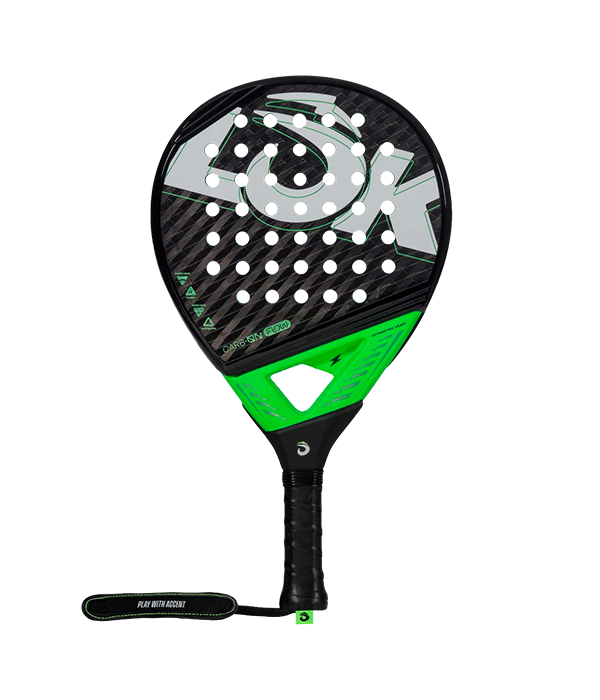 La pala Lok Carb-on Flow 2024 para jugadores de nivel intermedio una pala de forma redonda y de manejo fácil. Está fabricada con fibra de carbono Carbon C6 en la superficie. En la misma superficie, esta pala incorpora el diseño Gradual Face, que reduce las vibraciones y permite una mayor transferencia de fuerza en el golpeo. Por si fuera poco, presenta refuerzos de carbono por todo el marco para incrementar la rigidez y su resistencia