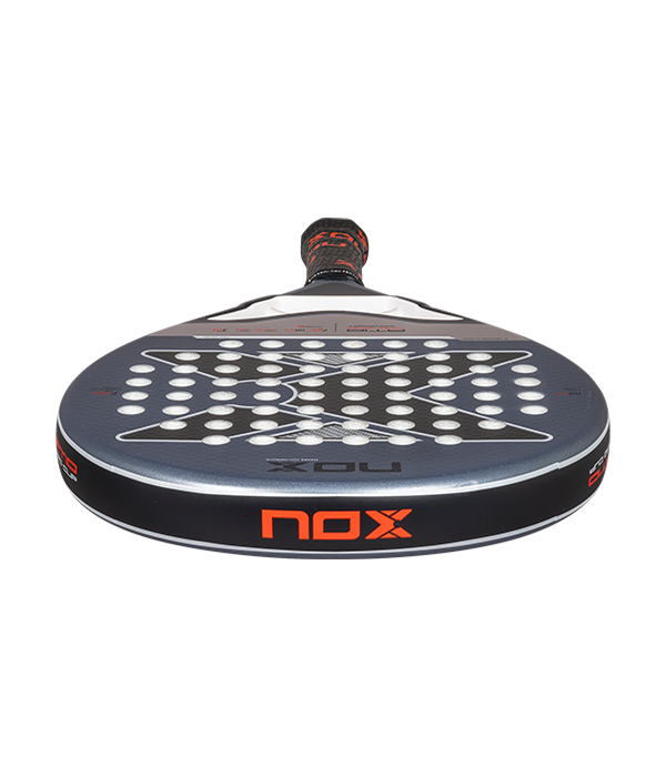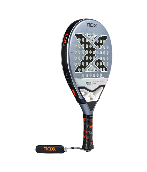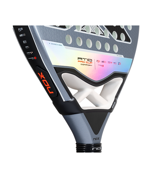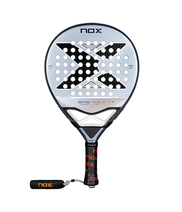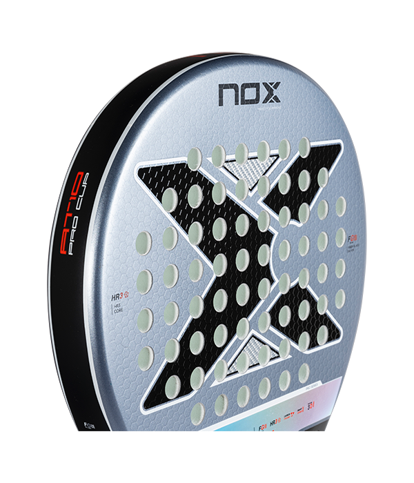 Pala NOX AT10 Pro Cup Comfort 2025 Agustín Tapia destinada a jugadores de control. Combina fibra de vidrio con un acabado metalizado y núcleo HR3 ofreciendo una