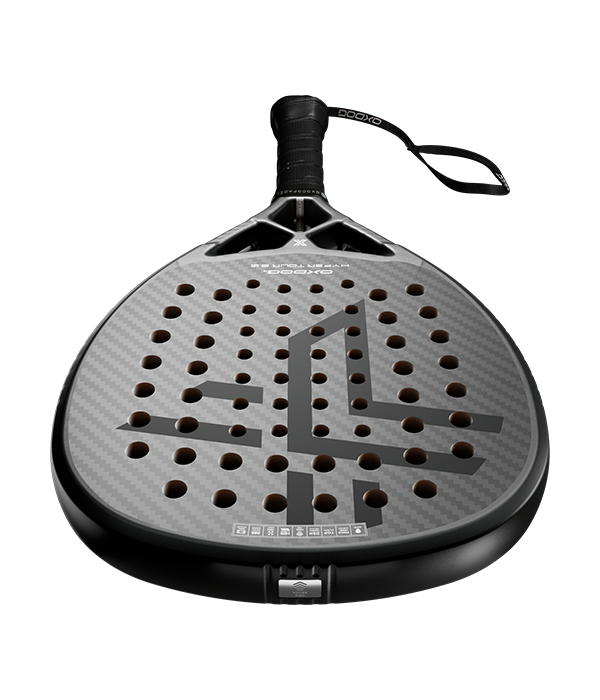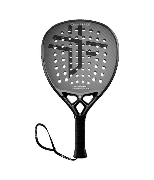 Pala Oxdog Hyper Tour 2.0, una pala con forma de lágrima, tacto y balance medio que ofrece un control excepcional y resultados de potencia extraordinarios. Destinada a los jugadores que buscan máxima polivalencia. Su diseño destaca por su elegancia gracias a la predominancia del color negro y la sutileza en los detalles del plateado.