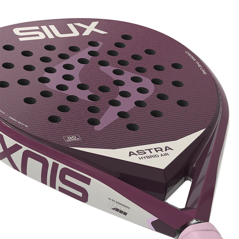 La Siux Astra Hybrid Air 2026 es una pala híbrida diseñada para jugadores de nivel intermedio que buscan equilibrio entre control y potencia. Su forma lágrima concentra masa en la zona media-alta, permitiendo golpes ofensivos . Caras de fibra de vidrio 3K y núcleo de EVA proporciona tacto suave y respuesta predecible. El acabado brillo + arenoso combina estética premium con capacidad de efecto en bolas . Peso entre 340 y 360 gramos para manejo cómodo y estabilidad adecuada en golpeos variados.