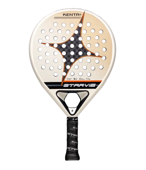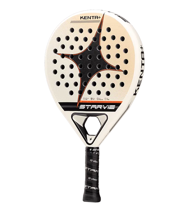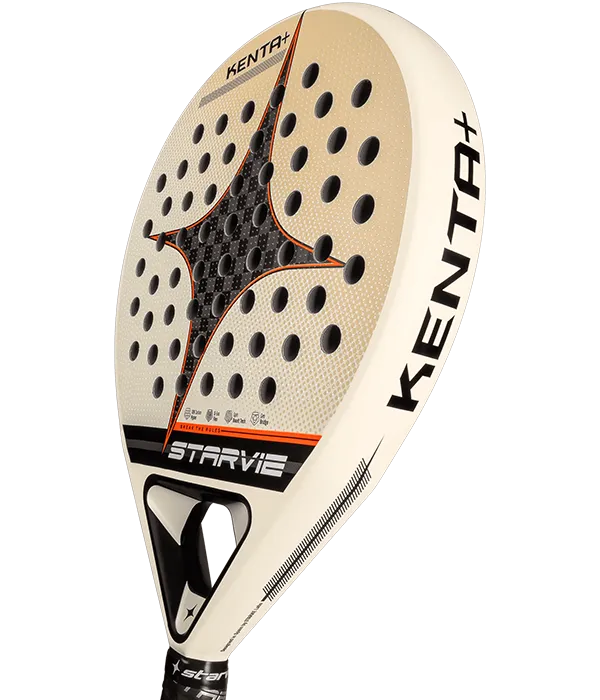 La Pala StarVie Kenta+ 2026 presenta un formato redondo con balance medio, diseñada para jugadores intermedios que buscan control, precisión y comodidad en cada encuentro. Su superficie en 12K Carbon Hyper amplía el punto dulce, optimizando la precisión, mientras que la goma S-Eva Flex de baja densidad proporciona una salida de bola suave y ligera para golpes confortables. La tecnología Geo Bridge refuerza la estructura interna, aumentando la rigidez y aceleración del golpe, y el sistema Z-Shock en el grip minimiza vibraciones, mejorando el confort y protección en cada impacto.