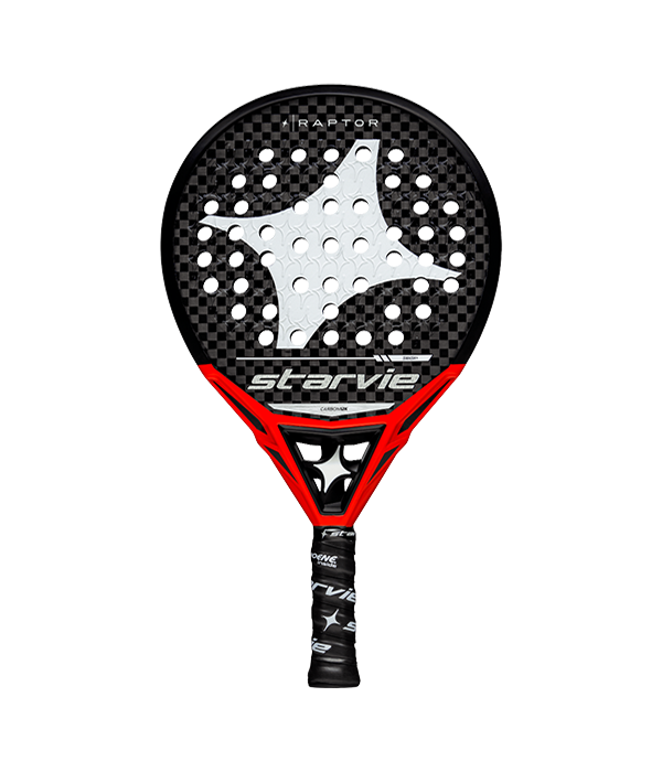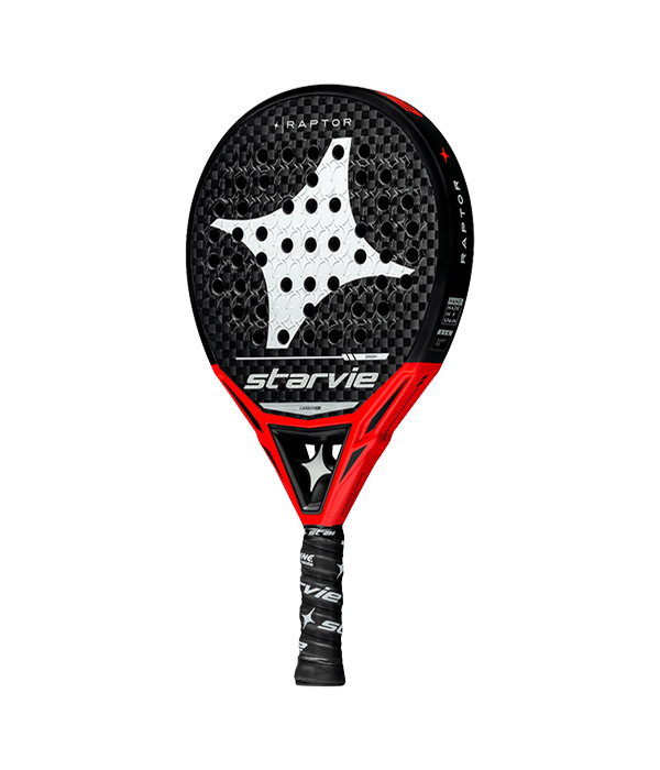 Pala Starvie Raptor Soft 2025 de forma redonda y goma Soft 30 de densidad blanda y de tacto blando destinada a un juego genérico. El carbono carbono 12K aporta un tacto más blando, proporcionando gran salida de bola. Esta combinación de materiales la hace perfecta para jugadores de nivel intermedio que buscan un juego polivalente y quieren dominar tanto la defensa como el ataque. Su rugosidad en el plano directamente del molde destaca por su estabilidad y durabilidad