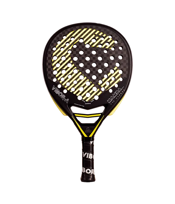 La pala VIBOR-A Mamba Pro Black 2025 presenta su nuevo molde con perforaciones laterales mejora la aerodinámica y el golpeo, optimizando el rendimiento en la pista.
