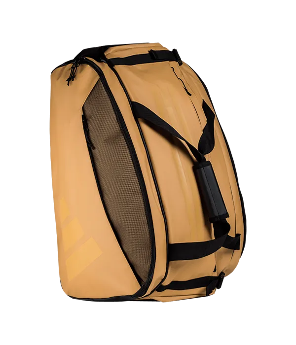 Paletero Adidas Multigame arena con un amplio compartimento central para ropa y equipamiento. En los laterales, integra dos bolsillos thermo con capacidad para dos palas por bolsillo. Además incluye un bolsillo ventilado para mantener el calzado fresco. Cuenta con varios bolsillos para objetos pequeños y dos correas ajustables de malla acolchada para mayor comodidad al transportarlo. Capacidad para 58L.