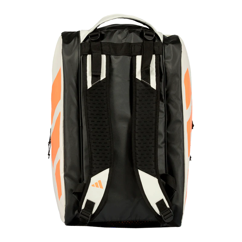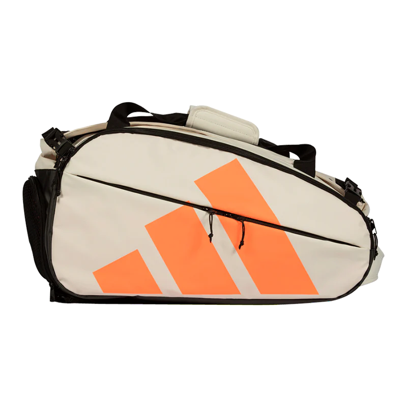 Paletero Adidas Multigame White 2026 diseñado para el jugador exigente, cuenta con compartimentos térmicos que protegen tus palas, bolsillos exteriores estratégicamente divididos para máxima accesibilidad, y un compartimento ventilado dedicado a la ropa húmeda. El bolsillo superior aterciopelado resguarda tus objetos de valor con elegancia. Su protector anti-agua y acabado off-white ofrecen durabilidad sin comprometer el estilo, convirtiéndolo en el compañero ideal para entrenamientos y competiciones.