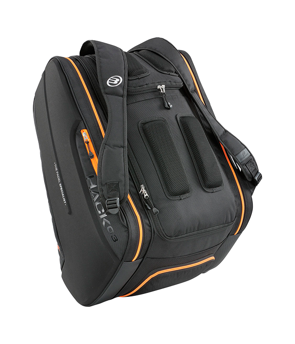 Este paletero incorpora en los laterales una carcasa semirrígida que aporta una mayor rigidez y una protección mejorada para las palas. Además, la configuración de la espaldera incluye piezas de espuma que aseguran una óptima ventilación y confort para la espalda.