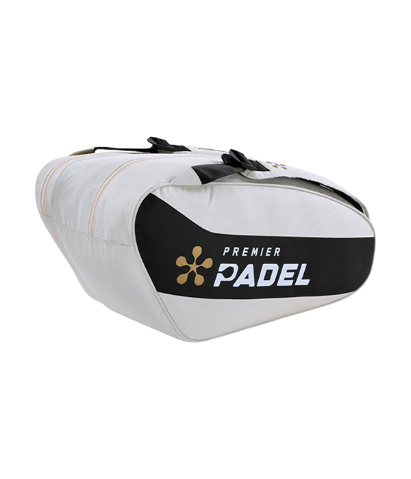 Paletero Bullpadel Tour edición Premier Padel en color blanco es una opción perfecta para quienes necesitan un diseño ligero, práctico y de capacidad media. Ideal para transportar lo esencial, dispone de un amplio compartimento principal y un espacio acolchado con capacidad para dos palas, garantizando la protección adecuada para tu equipo. También cuenta con un bolsillo lateral externo, ideal para guardar pequeños accesorios y mantenerlos al alcance.