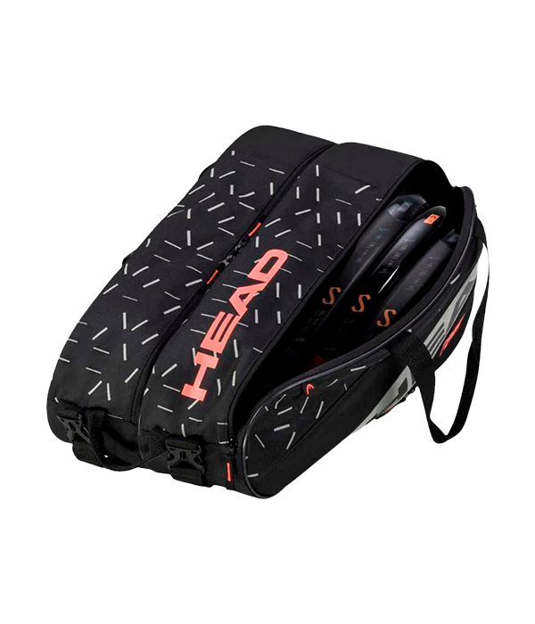 Paletero Head Team L Negro 2024 ligero y práctico con capacidad para almacenar hasta 9 palas en su interior. Dotado de múltiples bolsillos y compartimentos podrás guardar todo lo que necesites para tus partidos y entrenamientos.