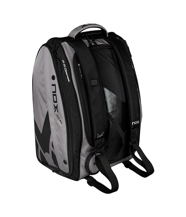 Paletero NOX AT10 Competition XL Compact 2024, el paletero elegido por el jugador Agustín Tapia. Su compartimiento principal con apertura lateral goza de una capacidad para 4 palas de pádel, ropa, etc. Además integra múltiples compartimentos entre los que se encuentra un compartimento para pelotas, otro térmico (capacidad para 3 palas) y un compartimento aireado para zapatillas.