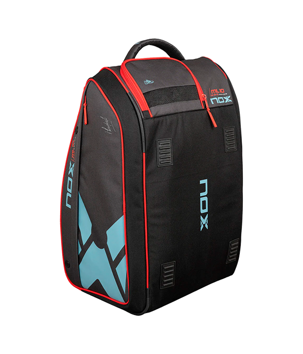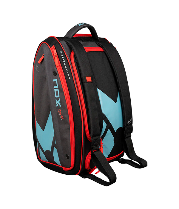 Paletero NOX ML10 Competition XL Compact 2024, el paletero de Miguel Lamperti. Su compartimiento principal con apertura lateral goza de una capacidad para 4 palas de pádel, ropa, etc. Además integra múltiples compartimentos entre los que se encuentra un compartimento para pelotas, otro térmico (capacidad para 3 palas) y un compartimento aireado para zapatillas.