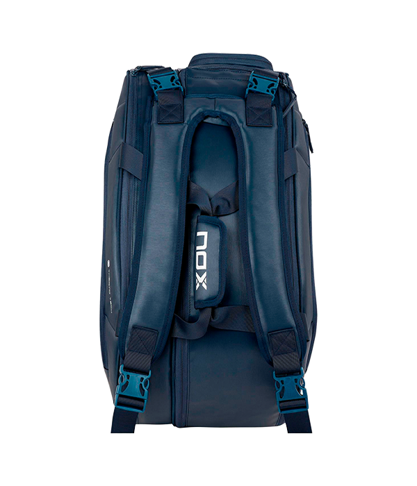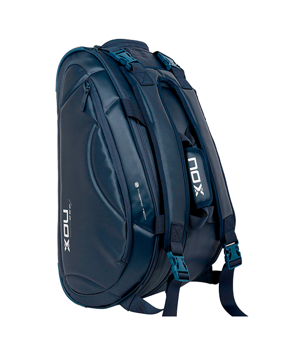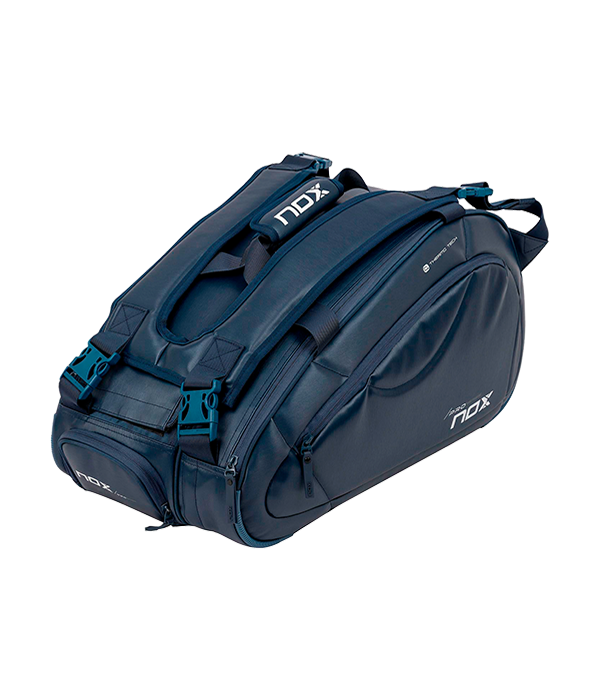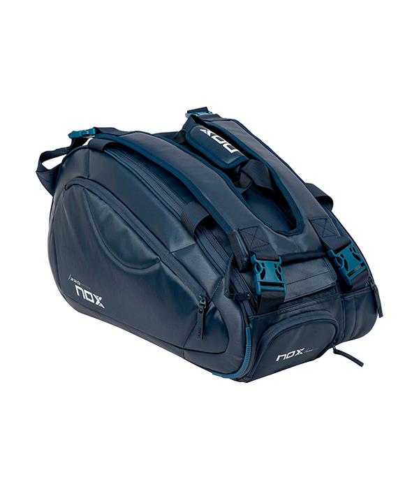 Paletero Nox Pro Series azul apto para llevar 3 palas, zapatillas y accesorios. Este paletero es térmico y muy amplio. Su revestimiento protege de los golpes al material de su interior.