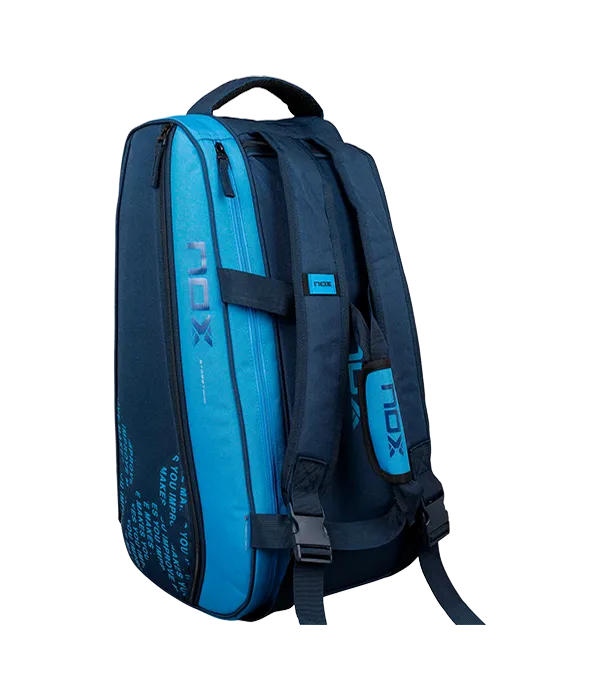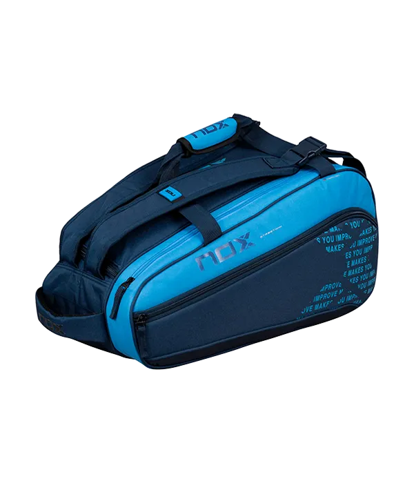 Paletero NOX Street Azul con un amplio compartimento principal de apertura lateral l con capacidad para 3 palas de pádel, ropa y más accesorios. Además, el compartimento térmico ThermoTech para almacenar 2 palas más. Incluye también un compartimento aireado para almacenar calzado. Base rígida que garantiza la protección del material.