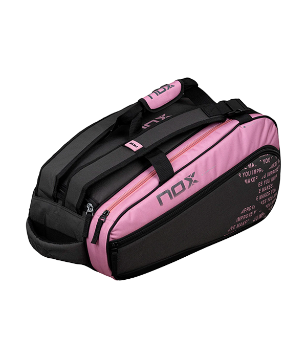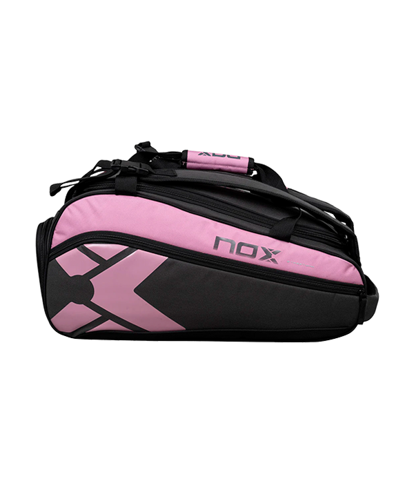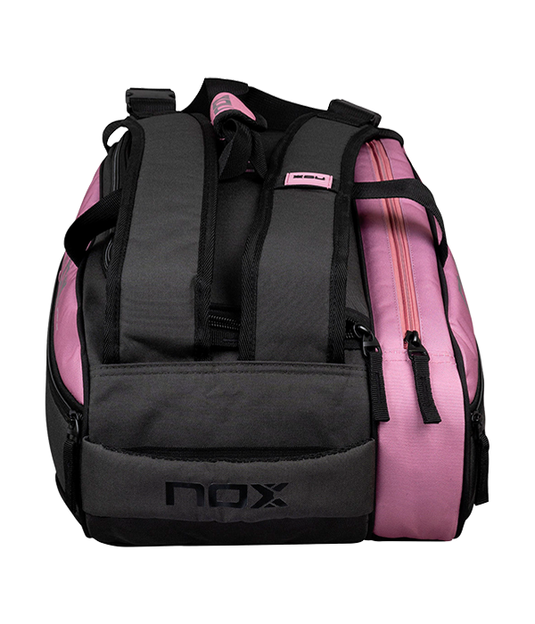 Paletero NOX Street Gris/Rosa 2024 con un amplio compartimento principal de apertura lateral l con capacidad para 3 palas de pádel, ropa y más accesorios. Además, el compartimento térmico ThermoTech para almacenar 2 palas más. Incluye también un compartimento aireado para almacenar calzado. Base rígida que garantiza la protección del material.