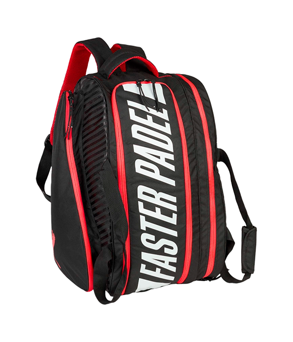 Paletero Puma Nova Negro/Rojo 2024 con un compartimento principal de amplias dimensiones y otro independiete con capacidad para otras dos palas más.
